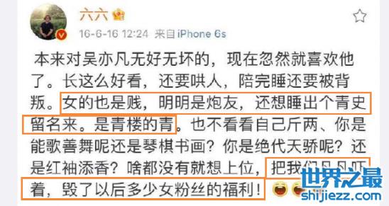 六六在文中为自己5年前的发言道歉,当时六六曾对“小G娜事件”发表过态度,她认为吴亦凡和女方是你情我愿,女方曝光就是无非就是想红,还让今后的粉丝无法享受到和偶像同床共枕的“福利”。