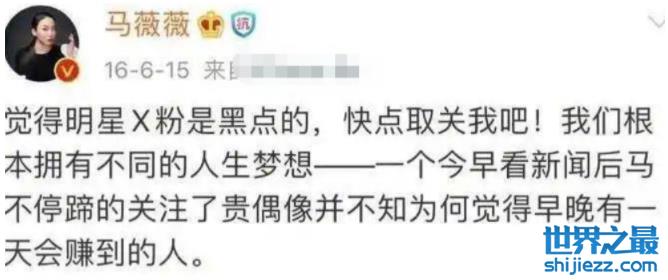 在小G娜那件事发生的时候,舆论的风向和现在完全不一样,很多名人都公开力挺吴亦凡,其中这位马薇薇女士的言论曾引起非常大的关注,她不仅在自己的社交媒体上发文力挺,还在公开场合下说了x粉是福利这样的话。