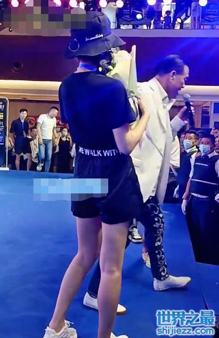 影帝万梓良商演获美女送花,一把搂住要亲上去,女方身体后仰躲开 ...