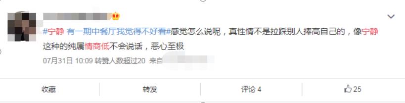 这边宁静在《中餐厅5》中怒刷存在,网友们也都坐不住了,除了各种猜测宁静说不好看的是哪一季之外,也开始了对宁静的讨论,而这些讨论中也有不太友好的声音,毕竟有些人觉得宁静这次有点过了。