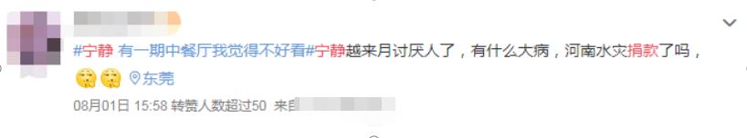 除了说宁静的个性和说话方式外,也有网友嘲讽河南受灾宁静没捐款的事情,总之就是各种表达对宁静的不满,评论区成了大型声讨现场。其实早年间宁静这样的性格,上了综艺之后还挺圈粉。