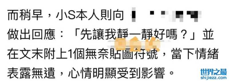 事情发酵至今,小S的回应都只有那一句“先让我静一静好吗?”尽管其母一直在替小S出面作答,但是总归不是她本人的回复。而观众、粉丝和网友最想看到的,是小S亲自出面给所有人一个合理的解释。