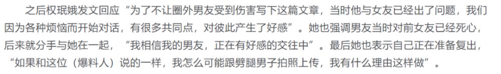 权珉娥更是疑似插足别人感情。报料人说自己好友和权珉娥的新男友一直是网红情侣,各种秀恩爱的片段随处可见,