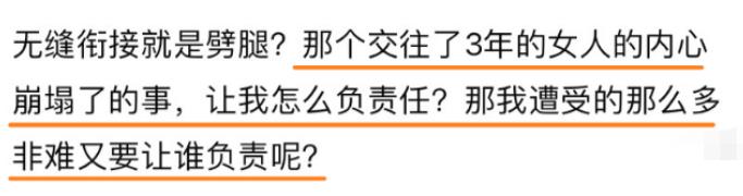并且陆陆续续产出了一堆迷惑言论。 什么“那个女人内心崩塌的事,让我怎么负责?”
