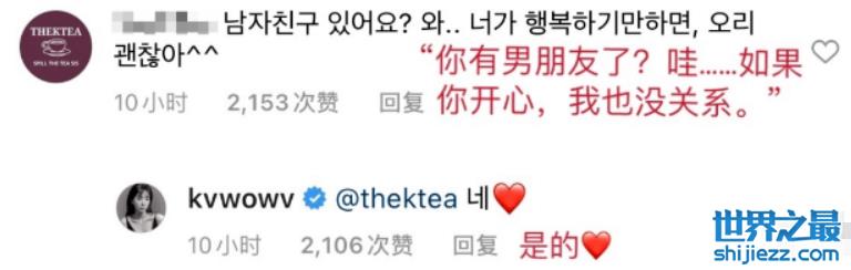 粉丝闻风而动,问她是不是恋爱了,权珉娥也大大方方地自曝了恋情。