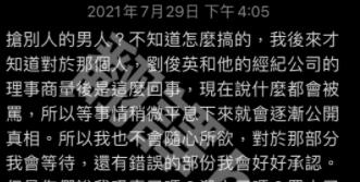 最后的最后,在自己的社交平台公开放了狠话给男友前女友的朋友,“如果有信心,就去告我吧。”