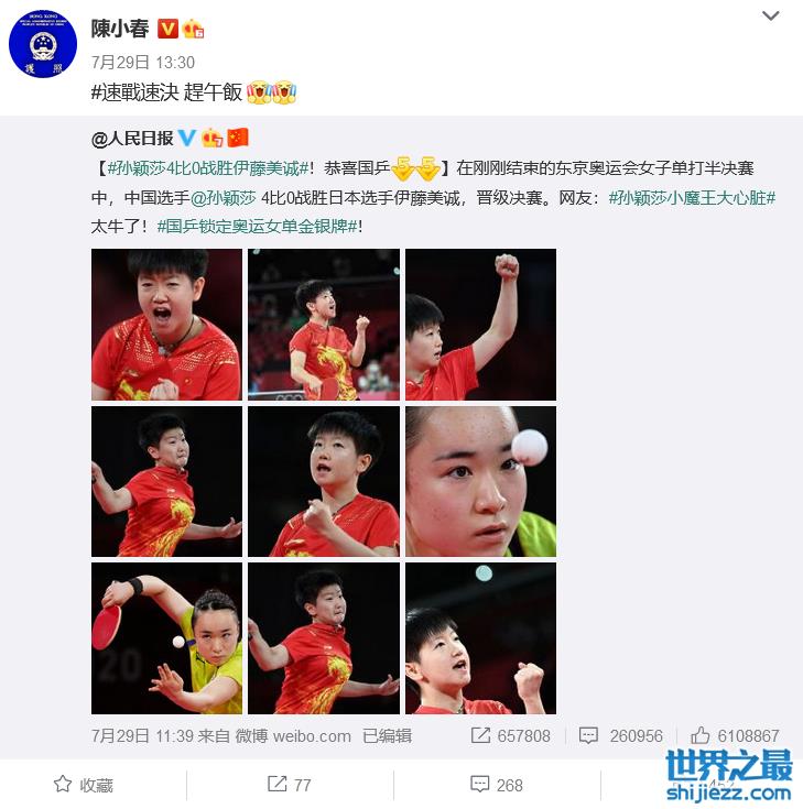 陈小春也多次转发人民日报微博内容,夫妻二人齐上阵,为奥运健儿打call。