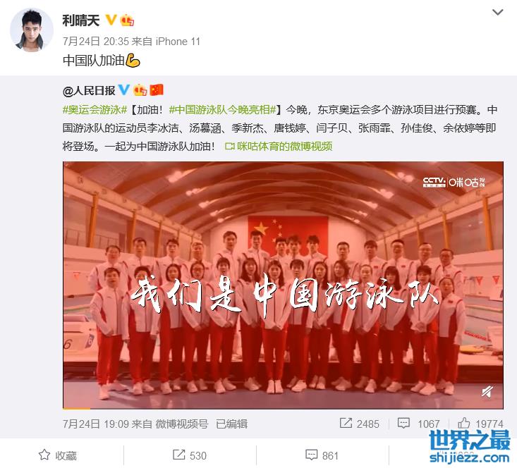 也有中国台湾艺人黄安,利晴天为奥运健儿打call。