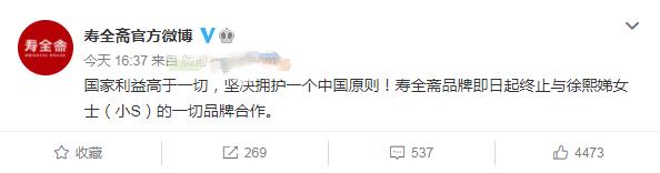 之后,小S的“国手”言论更是让人觉得阴阳怪气,无法接受。在一些大是大非面前,小S立场问题需要摆正,也难怪不少网友脱粉,四家代言纷纷宣布与其解约。