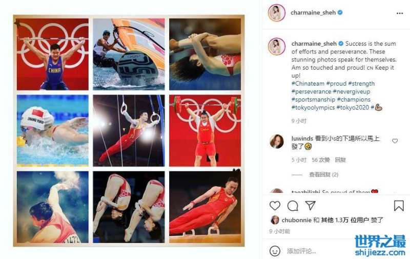 同时,佘诗曼也在ins上晒出很多运动员辛苦比赛的照片,配文:“这些令人惊叹的照片说明了一切。我很感动,也很骄傲!坚持下去!”