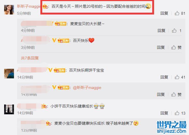 郑胡昕在评论区解释说:“百天是今天~照片是20号拍的~因为要配合爸爸的时间”,烧饼要忙于演出,也就是小饼干的照片是90天的时候拍的。不少网友也为小饼干送上百天祝福:“百天快乐啊饼干宝宝”,“小饼干百天快乐健康成长”,“麦麦小宝贝也要健康快乐成长,嫂子越来越美了”。