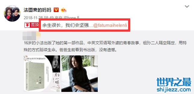 法图麦是5月20日生日,李咏还在世的时候,每年法图麦的生日,李咏都会第一时间给女儿送上生日祝福。李咏去世后,这一“任务”由妈妈来完成,法图麦19岁生日时,哈文给女儿送上生日祝福“生命是馈赠,享受每一天”的意义,法图麦感谢妈妈“爱你妈妈”。