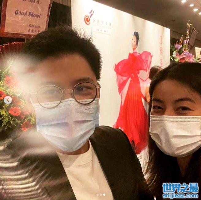 郭晶晶霍启刚夫妇二人看完演出,还与大家合影留念,在郭晶晶身边,霍启刚双手握在前面,像个乖巧可爱拘谨的大男孩。
