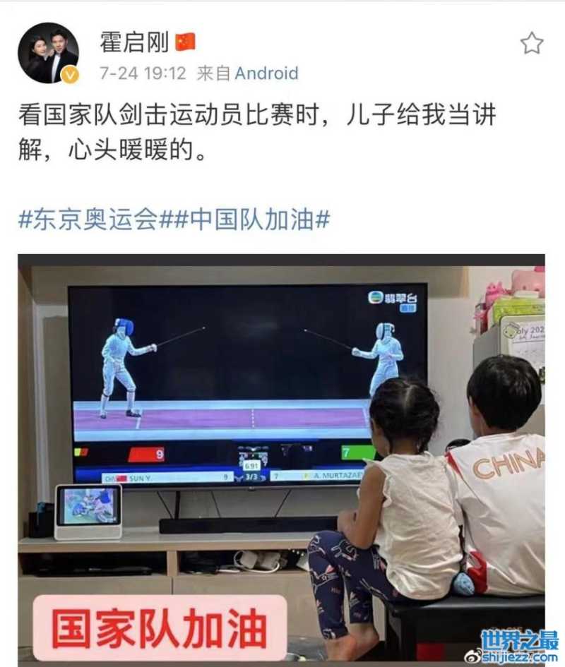 郭晶晶在日本忙着奥运会的工作,霍启刚也会带着孩子观看奥运会,哥哥也能担当讲解了,妹妹坐在哥哥身边,爸爸坐在后面拍照,郭晶晶看到孩子们在家这么乖,在外忙工作的她也一定会非常安心的。