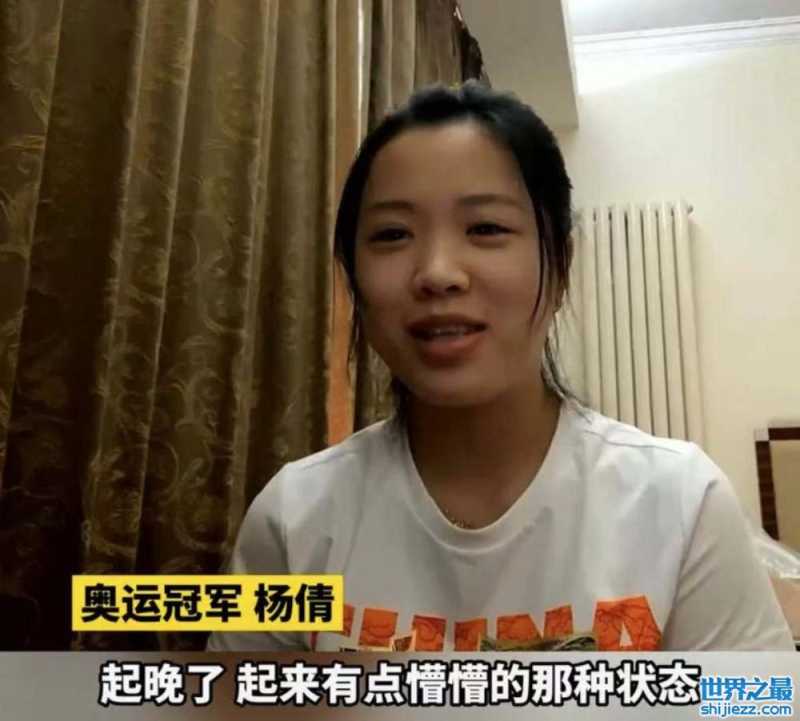 杨倩除了性格可爱以外,私底下还有一些小迷糊。此前她在与某主持人连线时透露过,自己因没睡醒曾在比赛途中睡着过,她最后还补充道,幸好有惊无险。当时她在回忆此事时脸上淡定的表情加上慢悠悠的说话语调,简直不要太可爱。