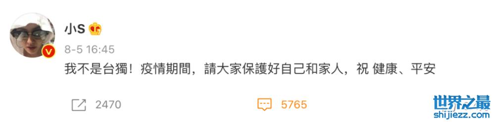 自从小S在ins上发表了支持中国台北运动员的动态后,她就一直没有再发声,还说自己要好好静一静。