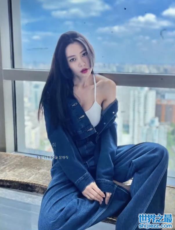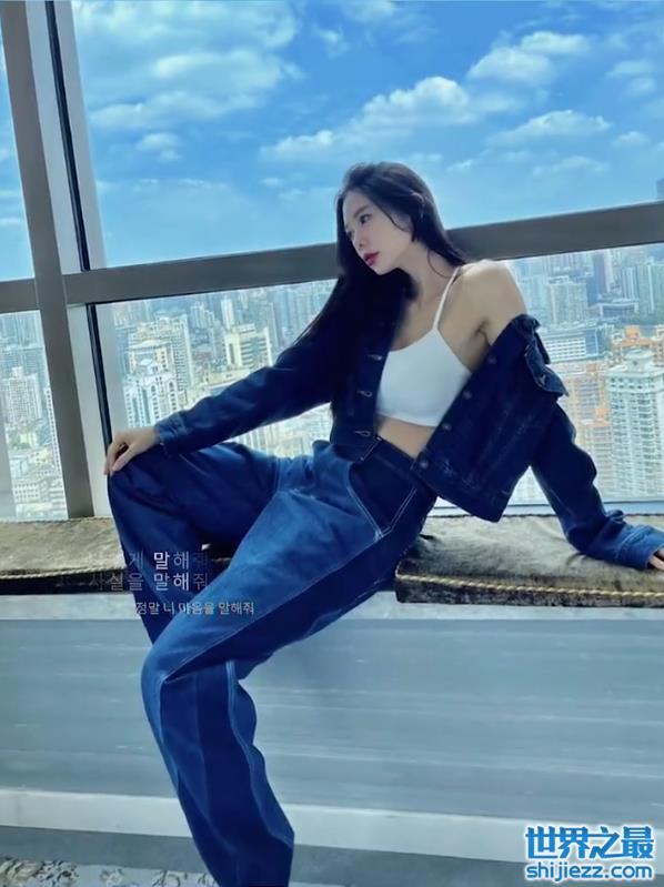 克拉拉身穿白色吊带运动内衣,外面披着一件牛仔外套半露香肩,下身搭配宽松喇叭口牛仔裤,再加上一头乌黑浓密的秀发,显得十分纯欲迷人。
