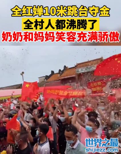 全红婵夺金那刻,有媒体记录了湛江迈合村里人的模样,可以说全村人都沸腾了!他们挥着国旗和横幅,双臂高举兴奋呐喊,甚至有人按奈不住激动原地高跳。他们为全红婵妹妹的完美成绩自豪,也为国家又多了一枚金牌而振奋。