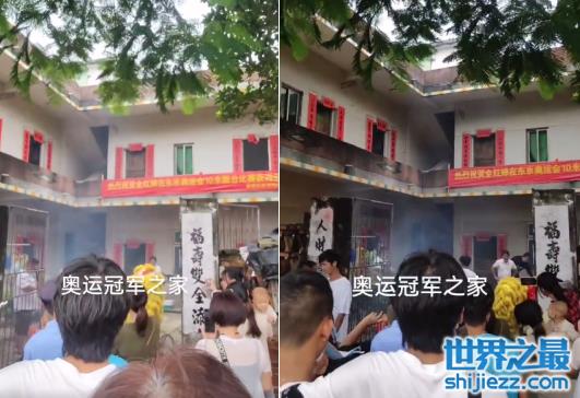 成为奥运冠军为国争光后,全红婵的家里也举办了热烈的庆祝仪式。从视频里看,全红婵家门口敲锣打鼓舞狮子好热闹,两层房子披红挂彩,拉横幅庆祝女儿首征东奥夺金。