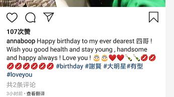 近日,女星上山诗钠在社交平台晒出一张与谢贤的亲密合照,并配文称祝我最亲爱的四哥生日快乐。