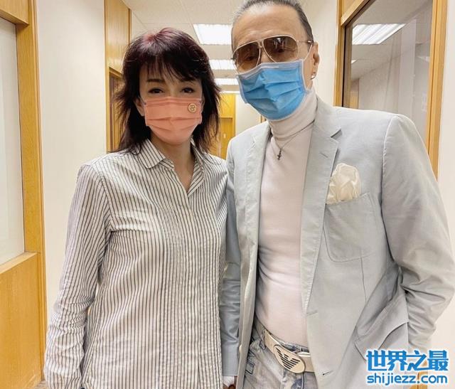 照片中,谢贤身穿灰色条纹西装搭配白色高领毛衫,戴着黑色大墨镜,时髦十足。虽然谢贤的脸上皱纹多如树皮,但精神状态看起来非常好。谢贤身旁的上山诗钠穿着绿色上衣,全身戴满了各种饰品,十分个性。好友上山诗钠紧紧地搂着谢贤,并主动亲吻了他的脸颊。被后辈主动献吻的谢贤显然十分惊喜,整个人看起来笑容满面神采飞扬。