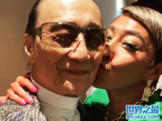 84岁谢贤庆生被美女亲吻!打扮时尚皱纹多,女方耳饰夸张皮肤黝黑 ...