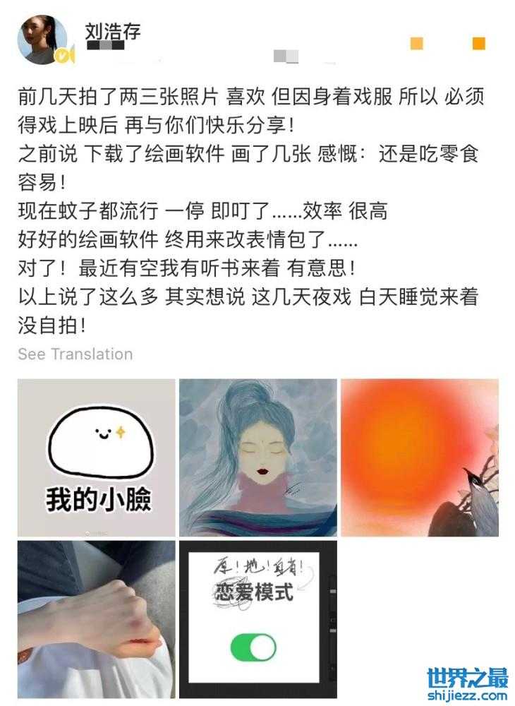 刘浩存不仅在镜头底下是一个“甜妹”,在私底下,她也非常的可爱。平时,刘浩存经常在社交平台上分享自己的日常,变身成一个顶级“小话唠”,分享自己一天做了哪些事情以及自己的感受,和粉丝们相处就像朋友一样。