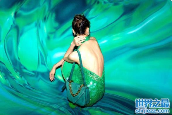 像在前不久拍摄的一组时尚大片中,刘雯身穿复古绿色亮片挂脖长裙,简单地挽起头发,露出的美背蝴蝶骨性感撩人,双手随意搭放垂落,也难掩细长,十分吸睛。