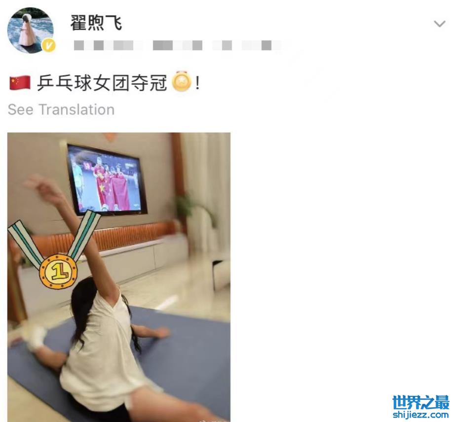 近日,雷佳音的妻子翟煦飞在社交平台上发布了自己9岁女儿看乒乓球赛时的照片,并配文“乒乓球女团夺冠”。