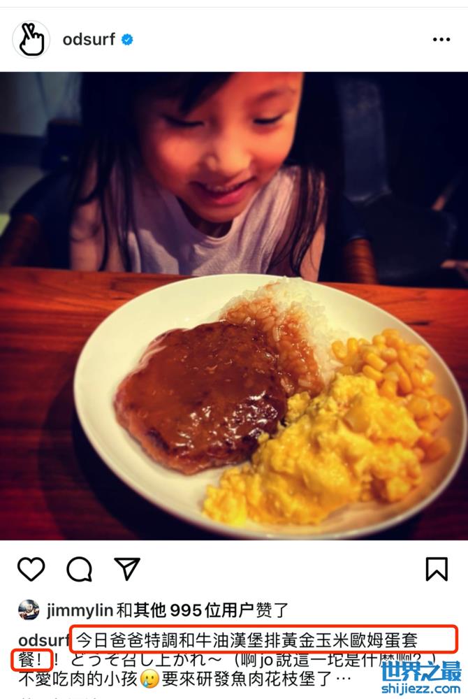 近日,欧弟在社交平台上发布了自己女儿吃饭时的照片,还配文道“今日爸爸特调和牛油汉堡排黄金玉米欧姆蛋套餐”。