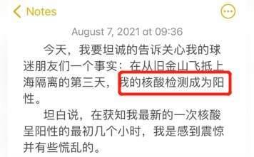 8月7日,林书豪在社交平台上自曝感染肺炎。据悉,他从旧金山抵达上海隔离的第三天就被检查出确诊新冠肺炎,在得知这一消息后,他表示自己的心情是十分震惊和慌乱的。