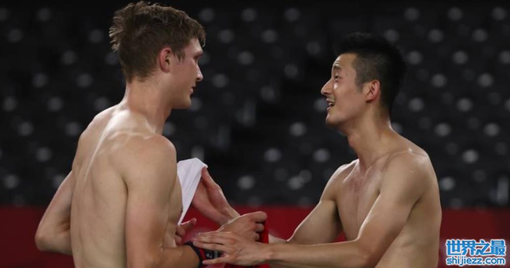 比赛结束后,谌龙拥抱对手安赛龙,两人互换球衣,这也是羽毛球赛场上,对对手最高的敬意。