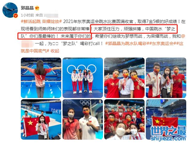 8月7日,东奥会跳水比赛完美收官,中国跳水取得了7jinx5银的好成绩,前辈郭晶晶也是发文晒照庆祝,表示激动之情。