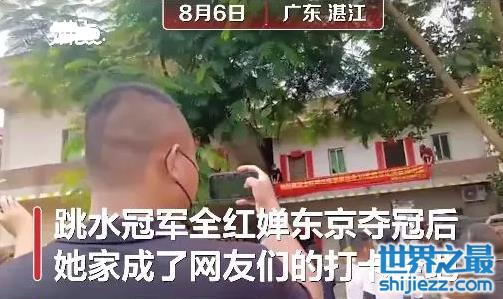 如今全红婵的家门都已经被村民和网友们给“踏破”了。从全红婵获得冠军开始,全红婵老家都已经成了热门的“旅游”点,甚至出现了很多过来蹭热度的人。