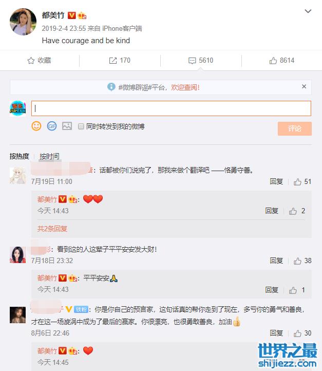 都美竹的“胜利”确实离不开很多粉丝的支持,都美竹和吴亦凡事件后,这是都美竹第一次回复粉丝评论最多的一次,真的是实力宠粉。