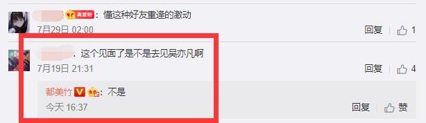 都美竹和吴亦凡确实只见过一面,并发生了关系,今年4月16日,都美竹发一条博文“终于要见面了”,有网友问:“这个见面了,是不是去见吴亦凡”,都美竹终于在今天首次回应:“不是”。