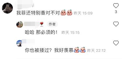 随后,侍酒师还在评论区补充说,王菲本人特别高,自己172cm穿上高跟鞋175cm,王菲比自己还要高。王菲说“来,咱拍”,侍酒师说“霸道总裁”,王菲本人真的很爽快。