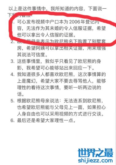 最后,欧尼熊好友称希望可心拿出有说服力的证据,证明自己是未婚。希望可心能够站出来正面回应。同时,欧尼熊父母拿出相关证据,并跟网友说要理性一点。