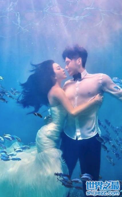跟比自己小11岁的老公张伦硕结婚后,夫妻两人甚至还拍摄了一组唯美梦幻的水下婚纱照,当时甚至还引发了不少网友争相模仿,爆红一时。