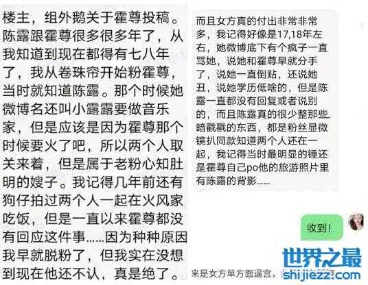 网友还称在这段感情中,陈露付出了相当多,不仅被霍尊的私生粉辱骂还被质疑学历低,面对种种恶言陈露一直都没有回复,这样一个性格内敛的姑娘却选择了在社交平台上公开恋情,无疑是想给自己这么多年的感情讨一个说法。