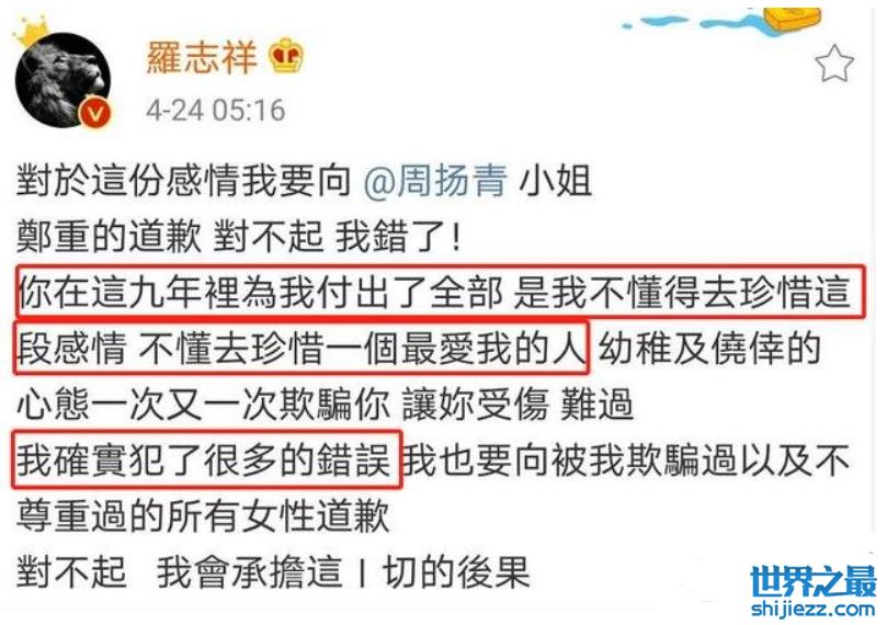 当初以为他会就此退圈,不过罗志祥依然照常更新动态,期间还向周扬青道歉,各种复出动作不断。