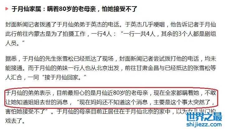 于月仙弟弟:姐姐去世暂时还瞒着80岁的老母亲,怕她接受不了 ...
