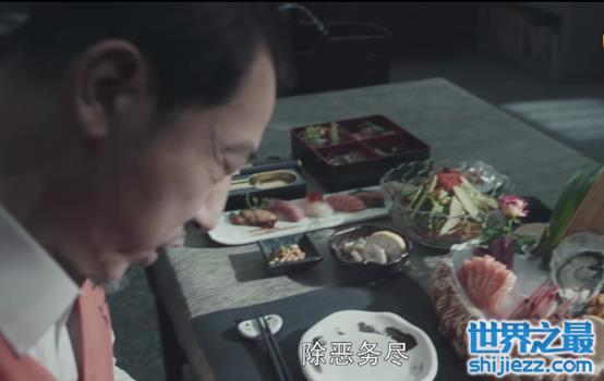 第一集里某个老大手上带着手铐,面前却摆满了日式海鲜大餐,手里抽着雪茄吞云吐雾,要不是他还穿着囚服,观众都以为这个大佬在五星级酒店。