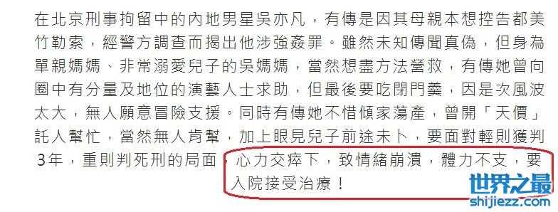 吴亦凡面临重判和巨额赔偿,港媒称吴亦凡妈妈心力交瘁入院治疗 ...