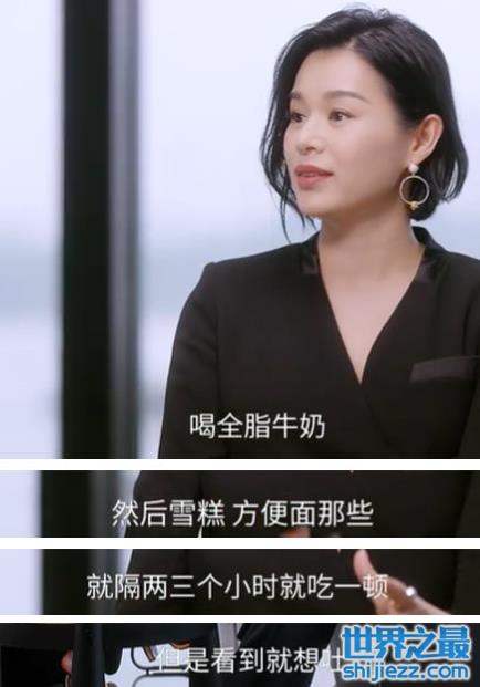 此外,胡杏儿还向刘嘉玲透露说自己在TVB拍戏的时候,因为角色需要自己增肥40斤。她喝全脂牛奶,然后隔两三个小时就吃一顿雪糕方便面,但是看到这些东西就想吐。
