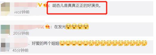 视频曝光后,网友们在个人社交平台上的评论区表达对胡杏儿的敬重,有的网友直接留言:“胡杏儿是真正的好演员”。