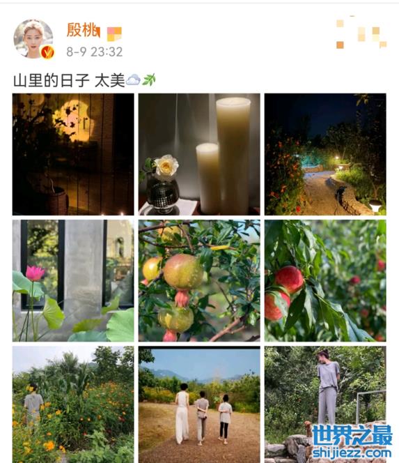 近日,殷桃在社交平台上晒出自己在山里日子的动态。画面里,水果、植物,还有开满花的小路样样不少,满眼都是祥和宁静的景象。