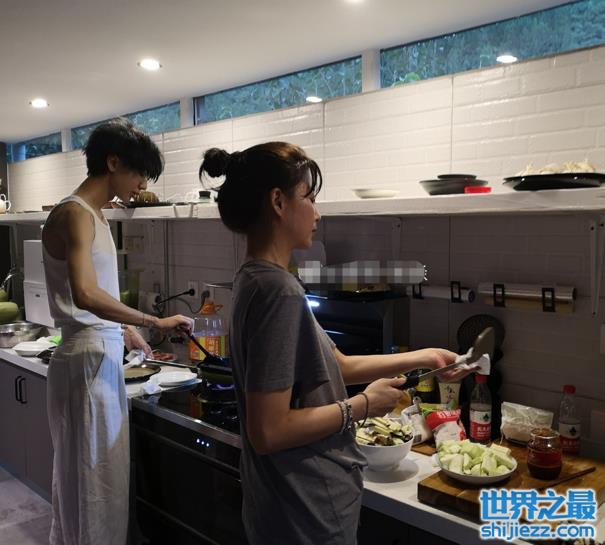 在他发布的照片中,他与殷桃一同在厨房做饭。可能是厨房有些闷热,殷桃额头上的汗珠显而易见。