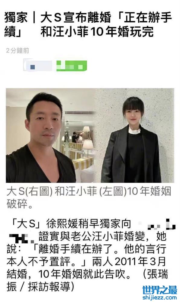 当时,有台媒爆出消息,称大s向媒体证实,自己和汪小菲正在办离婚手续,并表示“他的言行不予置评”。台媒爆料之后,迅速引起了网友们的讨论。