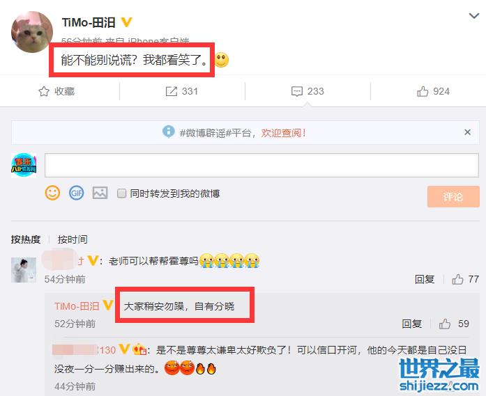就在陈露发长文后,曾担任霍尊的制作人,制作了歌曲《卷珠帘》的田汨发文:“能不能别说谎,我都看笑了”,疑似暗讽陈露在说谎,最后还在评论区称:“大家稍安勿躁,自由分晓”。